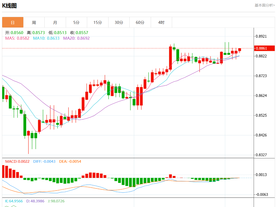 支撑位:0.8910 0.8890 0.8870
