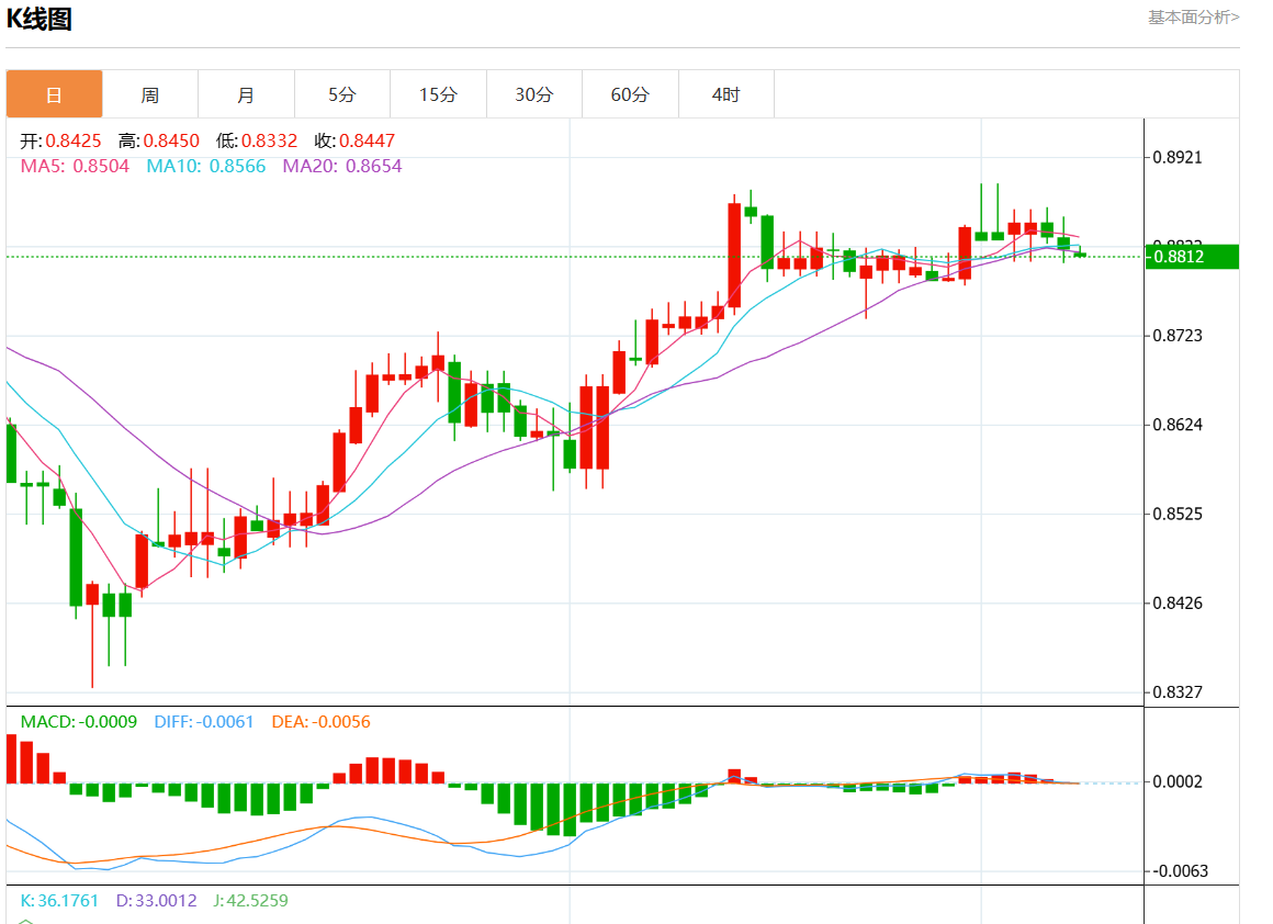 支撑位:0.8865 0.8855 0.8840