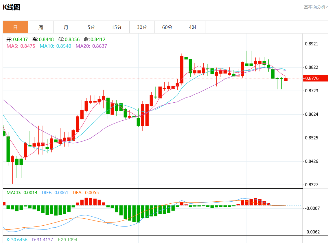 支撑位:0.8825 0.8805 0.8785