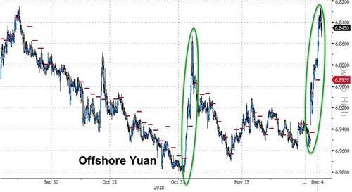 最近两日,受益于中美就经贸问题达成共识,人民币汇率上涨势如破竹,在近期新兴市场货币中表现抢眼。继12月3日在岸人民币对美元大涨551点后,4日在岸人民币对美元再涨484点,创9月21日以来新高,较二十国集团(G20)领导人峰会11月30日召开时暴涨逾千点。离岸人民币同样涨幅惊人。