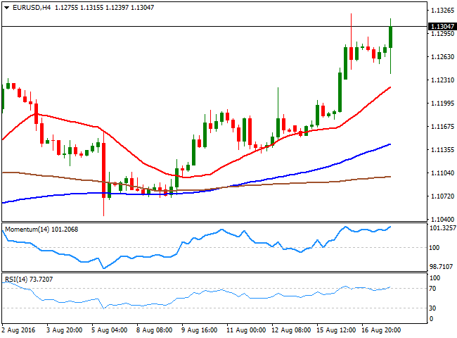 4小时图上,欧元/美元技术指标在超买领域走高,20SMA维持快速上涨的形态,且远低于当前汇价。整体上来看,风险依旧偏于上行,若突破1.1325,将上测1.1400整数关口。