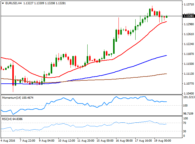 欧元/美元上周高见1.1366,收于1.1328,短期趋势看涨,日线图上,汇价突破100DMA,这是英国脱欧以来的首次突破,动能指标显示出强烈的上升势头,RSI指标巩固近期的超买水平。4小时图上,技术指标在到达多头领域之前自超买水平回撤,汇价维持在20SMA上方,目前位于1.1300附近,支撑汇价反弹。