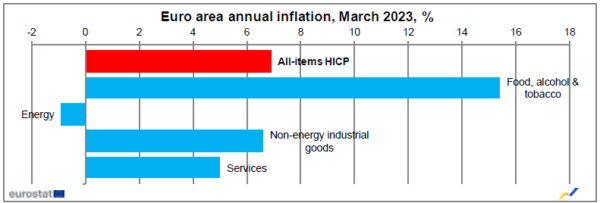 欧元区消费者价格在2月份上涨8.5%后,3月份上涨6.9%,这意味着自欧盟统计局1991年开始收集数据以来的最大跌幅。但与去年3月相比,能源价格下跌几乎完全是由于能源价格下降,当时俄罗斯入侵乌克兰后能源价格飙升。