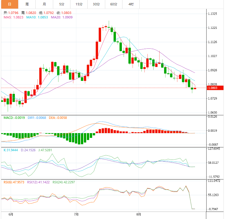 欧元技术面:欧元兑美元在1.0785附近波动,注意到随机指标逐渐失去了积极的势头,而EMA50继续对价格产生负面影响。