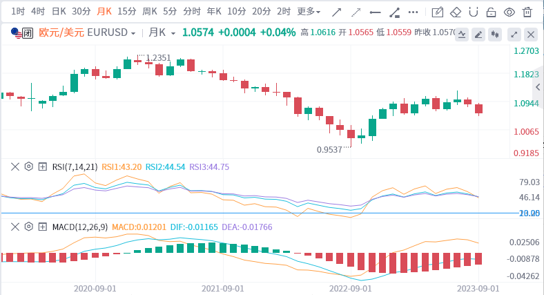 进入9月后,欧元/美元汇率大幅下跌,反映出市场的动荡和不确定性。随着欧元/美元汇率经历不稳定并寻求明确的方向,欧元显然继续面临挑战。欧元正在经历一个充满挑战的整合和不确定阶段。即将出现的“死亡十字”和近期交易通道底部的突破加剧了欧元的困境。欧洲央行决定加息0.25%至4%,创历史最高点。该银行在声明中表示,通胀仍然居高不下,需要进一步收紧政策。截至目前,报价1.0574,本月已下跌2.5%。