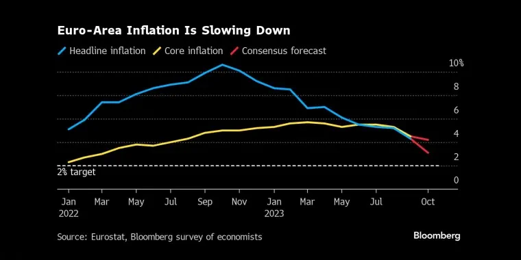 彭博社(Bloomberg)调查的29位经济学家中,除4位外,均持这种预期;因为他们预计,该地区最大经济体德国(GER)经济的收缩将加深,而其他大型经济体仅仅只能实现小幅增长。而彭博的模型预测是收缩。不过,随着经济显着放缓,多数经济学家预计,总体通胀可能下降0.9个百分点,至3.4%。