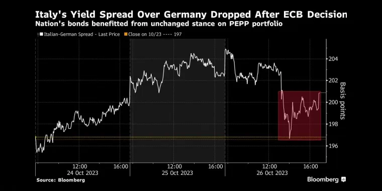 Jefferies Financial Group的经济学家摩西特·库马尔表示:“对意大利来说,欧洲央行的声明和新闻发布会是支持性的。我们目前对意大利国债持中立态度。意大利和德国的主权债券利差可能会进一步缩小,然而,未来下行压力将会加剧,我们可能利用这种反弹,在12月做空意大利国债。”