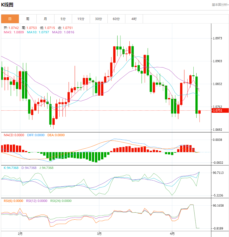 欧元周四持稳,周三因美国通胀报告火爆而下滑超过 1%。欧洲时段,欧元/美元报 1.0745,下跌 0.03%。
