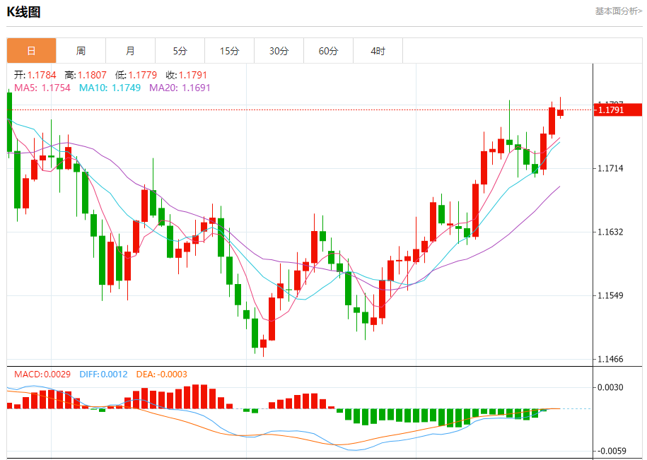 月线格局:200日均线在1.1920形成关键阻力,20日均线与100日均线形成"多头排列",MACD指标在零轴上方形成"二次金叉",支持中长期看涨逻辑。