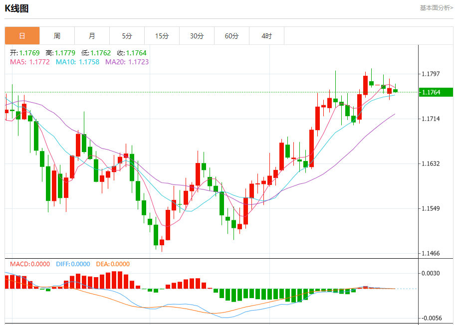今日周二,截止目前欧元兑美元报1.1766,下跌0.06%。