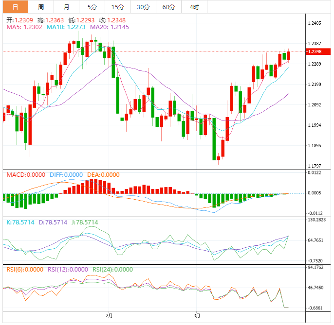 若上涨突破1.2340,目标是重新测试1.2450。