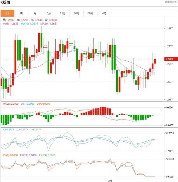 行情分析:汇价高见1.2709,低见1.2626。上一交易日,基本面上看,英镑昨日震荡上行,一度突破1.2700关口并刷新14个交易日高位。除美元指数在美联储降息预期等因素的打压下持续回调并失守104.00关口对英镑构成了有力的支撑外,时段内英国表现良好的经济数据也对汇价构成了一定的支撑。技术面上看,英镑兑美元周四盘整上行,但未能成功站上50日简单移动均线1.2680。多头发现上破这一技术阻力具有挑战性。如果汇率成功上破这一阻力,价格可能向趋势线阻力位1.2725移动。另一方面,如果卖家卷土重来并引发市场逆转,那么抵御看跌攻击的第一道防线在1.2600附近。如果行情继续走弱,超过此点的进一步损失可能为价格向趋势线支撑位和200日简单移动均线1.2560下滑创造条件。