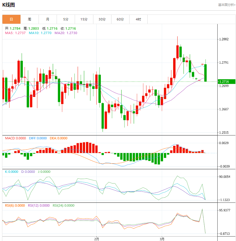 英镑周四小幅走低。欧洲时段,英镑/美元报 1.2766,下跌 0.16%。