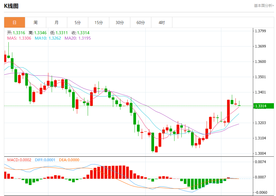 英镑/美元近几日持续反弹,从本月低点1.3010升至当前1.3240附近,现价位于看跌旗形通道上轨附近。技术面上,该货币对面临50日均线1.3285的阻力,且仍处于云图(Ichimoku Cloud)下方。