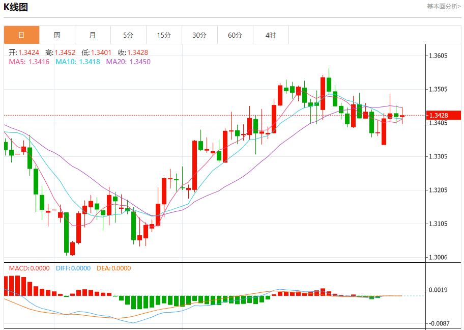 周四欧市盘中,英镑兑美元交投于1.3429,涨幅为0.02%。