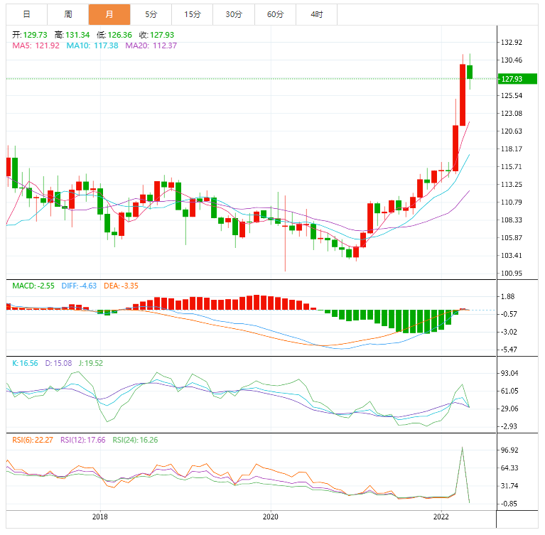 美元兑日元下跌1.04%至127.91,连续第二周走低。有调查显示,由于日元疲软带来的痛苦,超过60%的日本企业希望央行在本财年结束大规模货币宽松政策,大约四分之一的企业呼吁央行现在就采取行动。日本央行不断向经济注入流动性,意图刺激需求,但日本经济尚未达到新冠病毒大流行前的水平,在这种情况下全球通胀压力不断飙升可能会火上浇油。物价压力急剧上升表明,日本家庭实际收入必然面临严重缩水。
