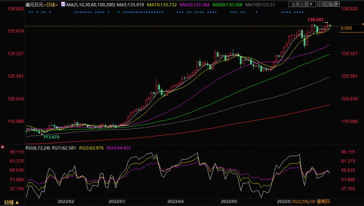 3月初,日元兑美元汇率还在114附近,自从3月美联储宣布加息以后,日元兑美元汇率就一路走低。到了5月,在经历两个月的连续贬值,日元汇率有所回升,自5月中旬后保持在130以下,可是好景不长,6月以来,日元汇率再度走贬,直到6月29日刷新近24年以来新低。短短3个多月的时间,日元兑美元汇率已贬值17%。