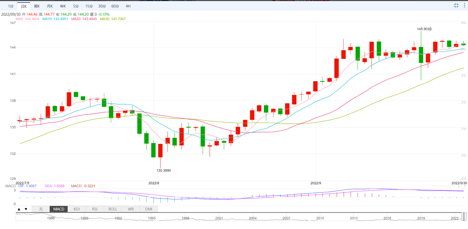 10月美元兑日元技术展望