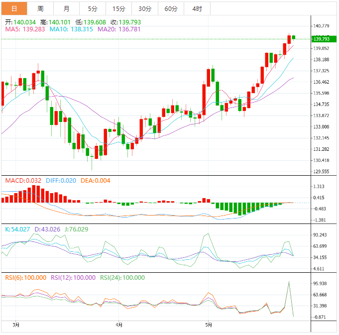 预计今天的交易区间在139.00支撑位和140.80阻力位之间。