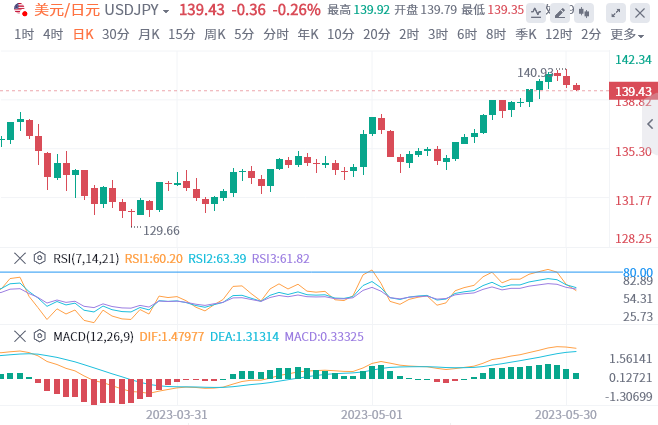 美元/日元5月开盘报价140.96,最低触及133.51,日本央行行长植田和男强调了该国的通胀困境,并重新对日本央行提出了鹰派偏见。然而,政策制定者也表示,“通胀是由需求还是供应引起的,对货币政策的制定具有非常重要的影响。同样,日本4月份的数据也喜忧参半,因为工业生产同比有所改善,但环比有所回落,而大型零售商销售额在上述月份大幅上升。截至发稿,美元/日元报价139.42。