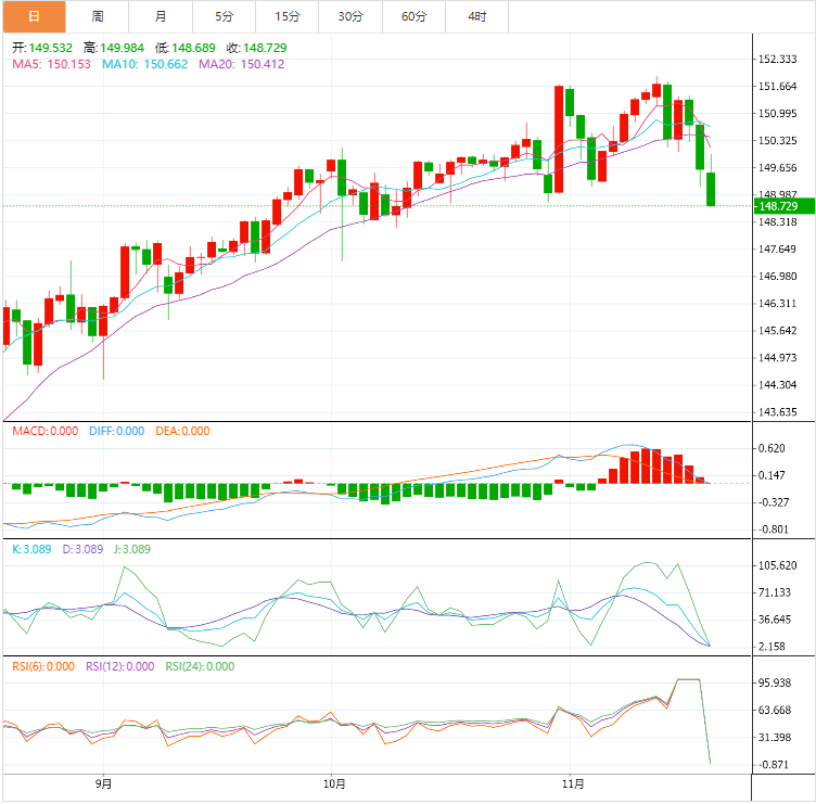 基本面上,美元兑日元继续在六周低点附近交易,延续了周一欧洲早盘在148.90附近的跌幅。148.50主要水平出现,直接支撑位与23.6%斐波那契回撤位148.49对齐。