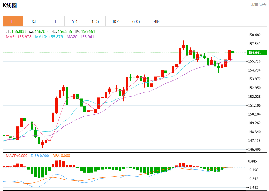 周三纽盘,美元兑日元交投于156.659,跌幅为0.15%。