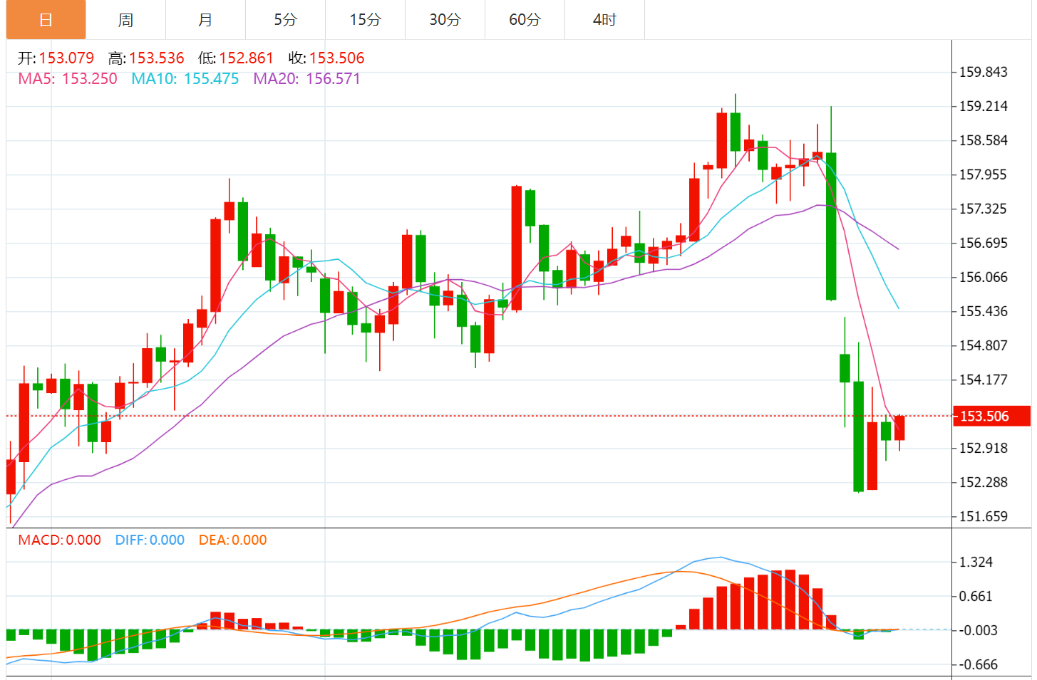 日内高位:157.34