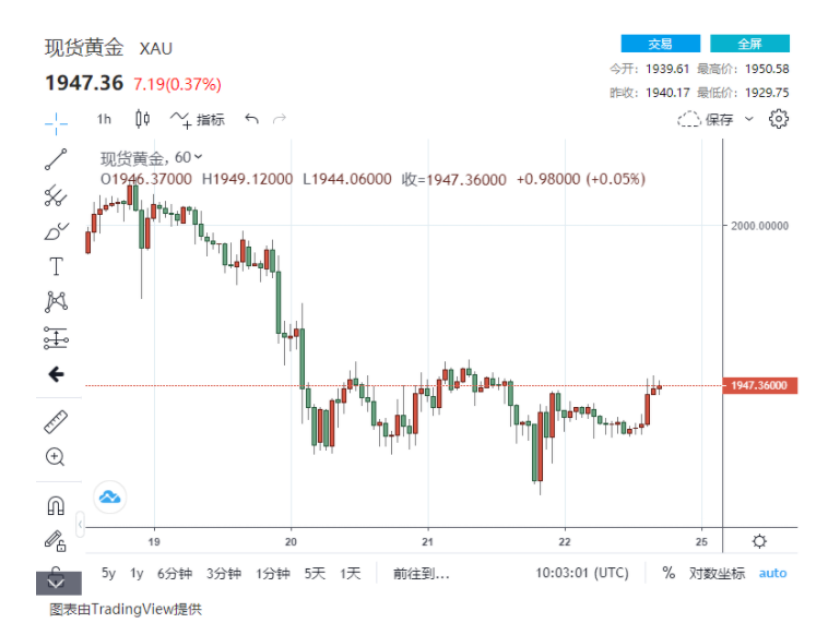 (现货黄金1H走势图)