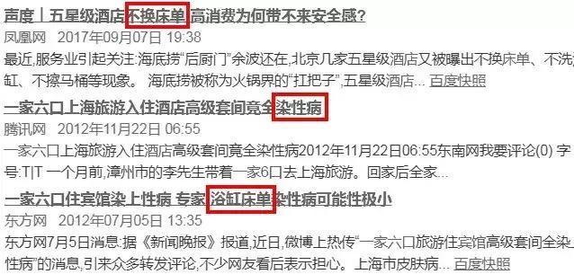 再后来,还有一个小机构也是暗访几个酒店,揭露了一些便捷酒店里的清洁潜规则,但动静小得多。