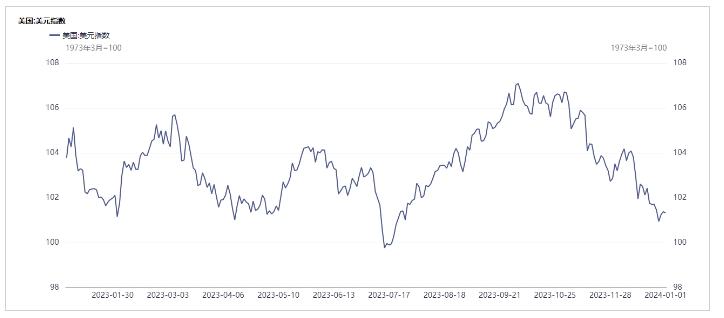 2023年美联储持续加息帮助美元基本保持“强势”,但围绕降息的预测不断,导致年内美元指数涨跌波动较多。基于美国经济增长放缓和美联储货币政策即将“转向”的预期,市场普遍认为,2024年将是美元逐渐回落的一年。但由于欧盟、英国等外部地区经济环境依然疲弱,美元跌幅或十分有限。 2023年:美联储加息使美元维持相对