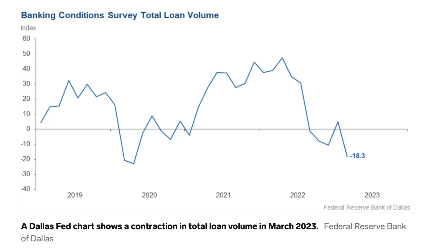 Slok引用了3月10日硅谷银行倒闭后达拉斯联邦储备银行的一项调查,他表示,这表明贷款数量出现了戏剧性的逆转。