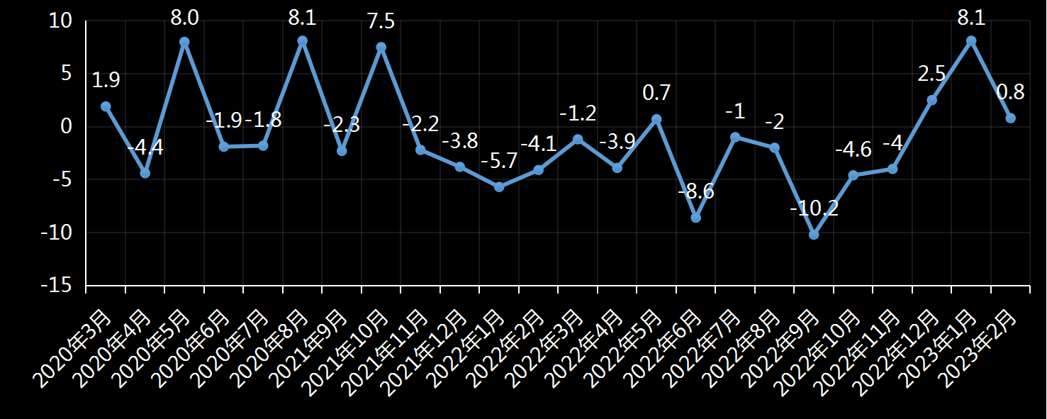 从美国市场传出的声音几乎都在唱衰美国经济。2月底,美国国家商业经济协会48名经济学家中有58%的人预测2023年美国经济在某个时候会出现衰退。3月5日,世界大型企业联合会根据概率模型预测经济衰退的概率接近99%。衰退的主要原因是美联储加息,并认为2023年前三个季度实际GDP增长率可能为零或负。