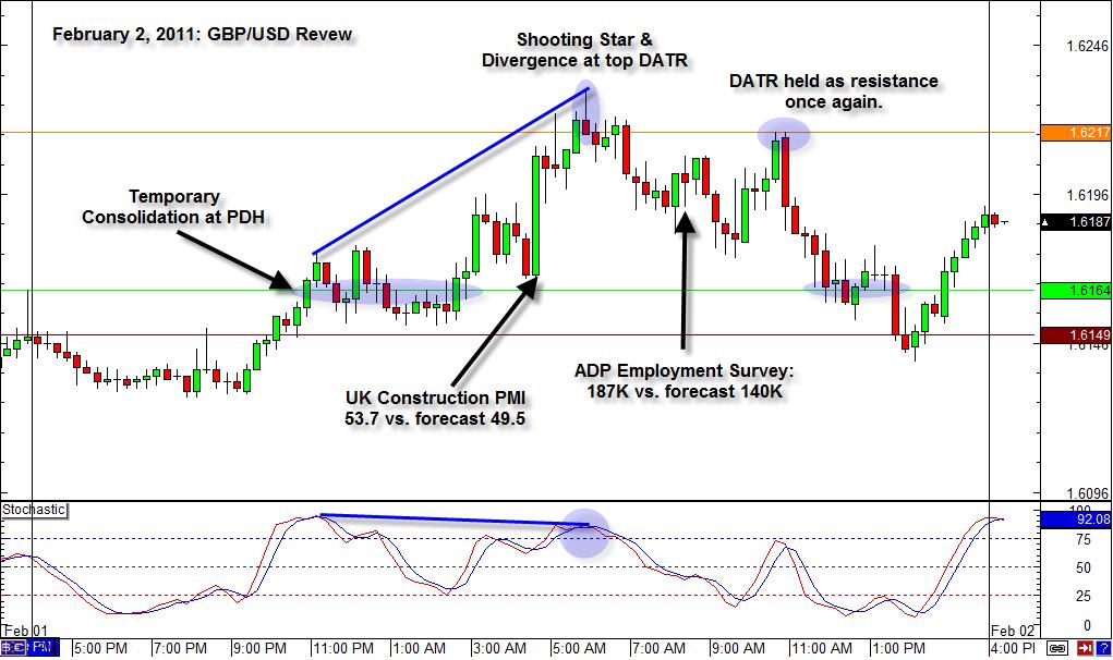 英镑/美元15分钟图为我们很好的展现了利用背离进行交易的方法。