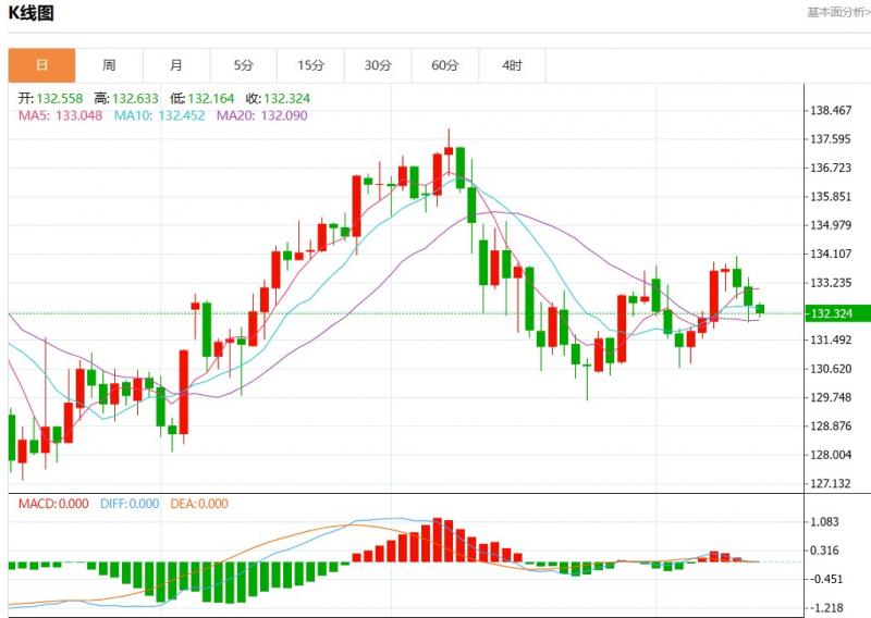 今日周五,美元兑日元报132.279,跌幅0.17%。