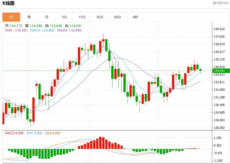 今日周四,美元兑日元报134.822,涨幅0.57%