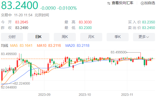 印度卢比当天交易疲软。自去年9月以来,美元兑印度卢比一直在82.80-83.35的较宽区间内交易。从技术面来看,美元兑印度卢比保持看涨势头,因为该货币对在日线图上守住了关键的100日指数移动均线(EMA)上方。这一观点得到了14日相对强弱指数(RSI)持于50.0中线上方的支持。