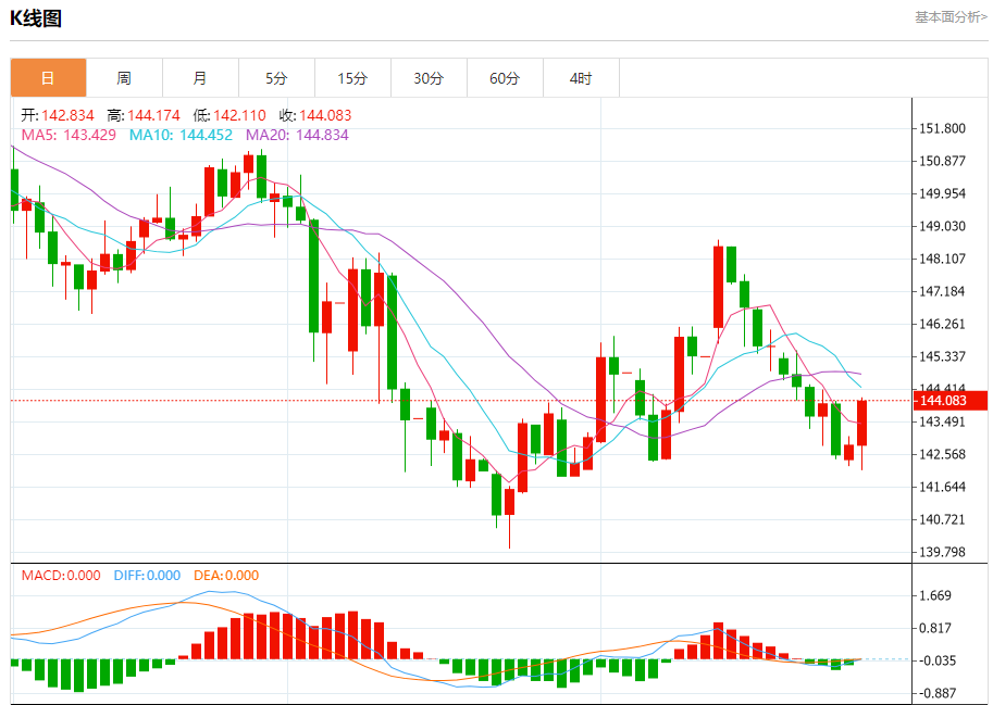 技术点评:上升突破143.05阻力位后,将会引发加速上涨至目标位144.30。