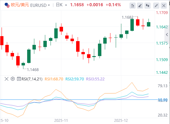 欧元自11月中旬低点以来呈多头趋势,主要受美元整体走弱支撑。投资者几乎完全预测美联储周三将降息四分之一个百分点,2026年还会有几次降级。与此同时,包括欧洲央行在内的全球主要央行也已进入这一宽松周期的尾声。
