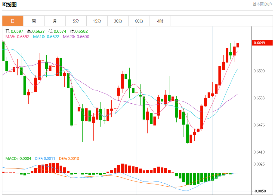 今日周三,澳元兑美元报0.6650,涨幅0.12%;美元兑加元报1.3839,跌幅0.05%;美元兑瑞郎报0.8046,跌幅0.21%。