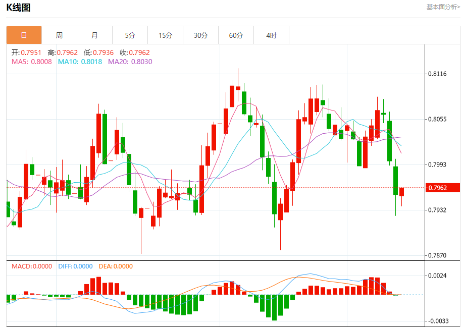 今日周五,澳元兑美元报0.6663,跌幅0.02%;美元兑加元报1.3769,涨幅0.00%;美元兑瑞郎报0.7964,涨幅0.11%。