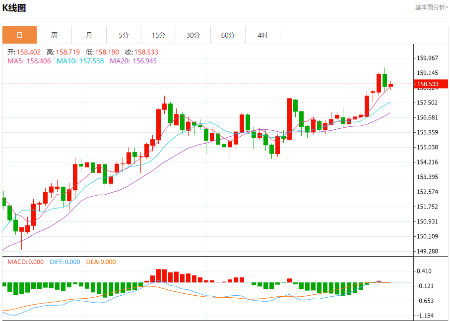 今日周四,欧元兑美元报1.1633,跌幅0.10%;英镑兑美元报1.3412,跌幅0.22%;美元兑日元报158.557,涨幅0.08%。