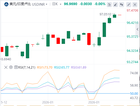 美元兑印度卢比的反弹在创下历史新高后暂停,尽管美元已解决美欧之间关于格陵兰权益的地缘政治和贸易争端,但美元仍面临抛售压力。