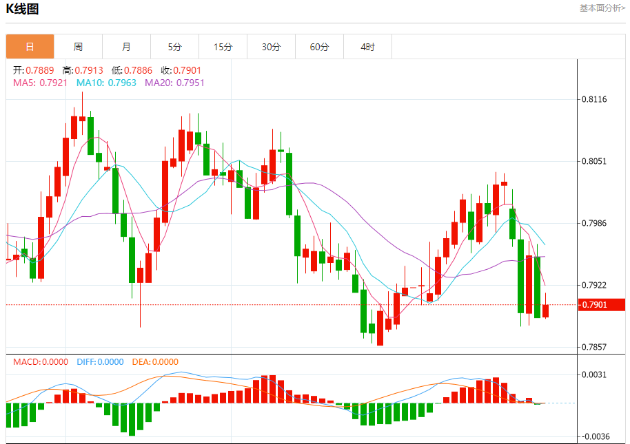 技术点评:只要0.7925阻力位不被突破,向下跌破0.7880位置的风险很高。