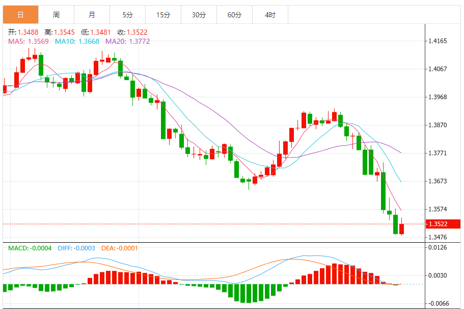 周五,美元/加元徘徊于1.3523下方,现交投于1.3521附近,涨幅0.24%。