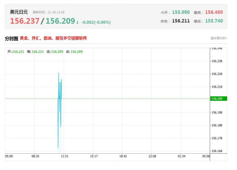 截至目前,美元/日元跌幅0.01%,报156.209。