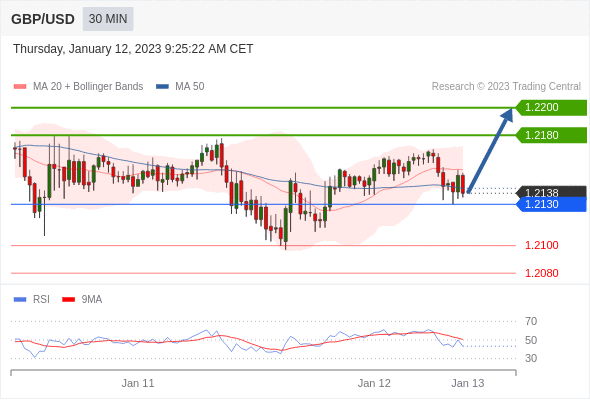 英镑/美元汇率今日分析:在 1.2130 之上,看涨,目标价位为 1.2180 ,然后为 1.2200 。在 1.2130 下,看空,目标价位定在 1.2100 ,然后为 1.2080。