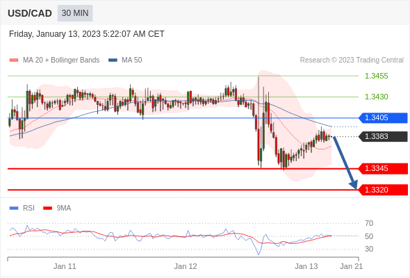美元/加元汇率今日分析:在 1.3405 之下,看跌,目标价位为 1.3345 ,然后为 1.3320 。 在 1.3405 上,看涨,目标价位定在 1.3430 ,然后为 1.3455。