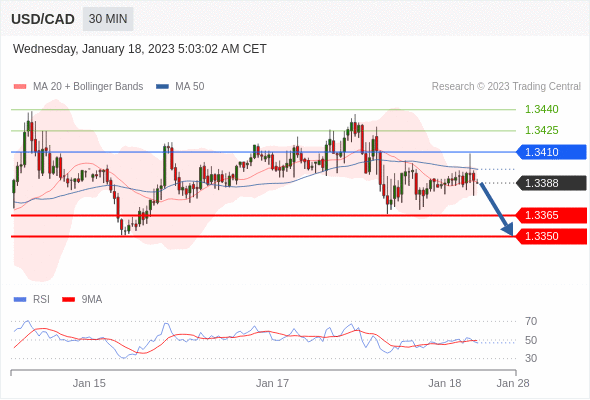 美元/加元汇率今日分析:在 1.3410 之下,看跌,目标价位为 1.3365 ,然后为 1.3350 。在 1.3410 上,看涨,目标价位定在 1.3425 ,然后为 1.3440。
