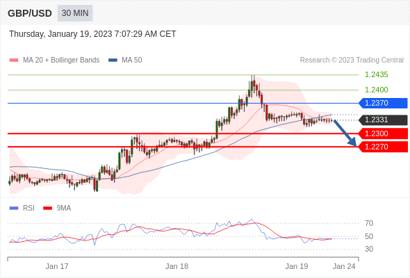 英镑/美元汇率今日分析:在 1.2370 之下,看跌,目标价位为 1.2300 ,然后为 1.2270 。在 1.2370 上,看涨,目标价位定在 1.2400 ,然后为1.2435。