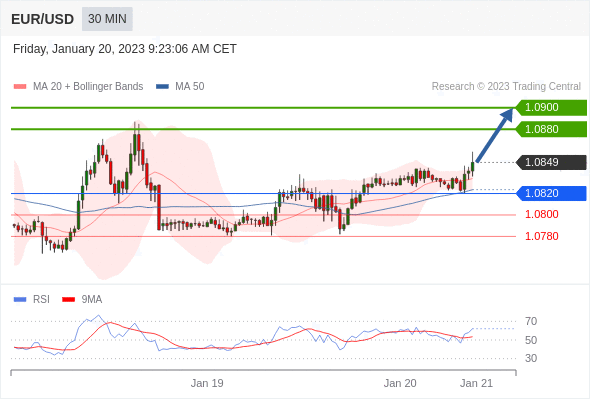 欧元/美元汇率今日分析:在 1.0820 之上,看涨,目标价位为 1.0880 ,然后为 1.0900 。 在 1.0820 下,看空,目标价位定在 1.0800 ,然后为 1.0780。